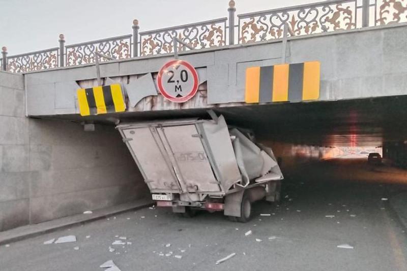 Қонаев көшесімен Тұран даңғылына қарай бет алған «ГАЗ-3302-288» көлігі тоннелге сыймай, қабырғасын қопарып кеткен.