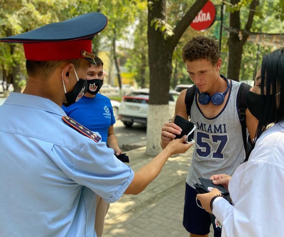 Шымкенттік полицейлер мен еріктілер тұрғындарға маскалар таратты