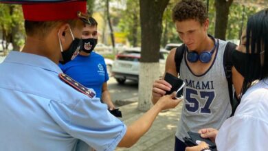 Шымкенттік полицейлер мен еріктілер тұрғындарға маскалар таратты