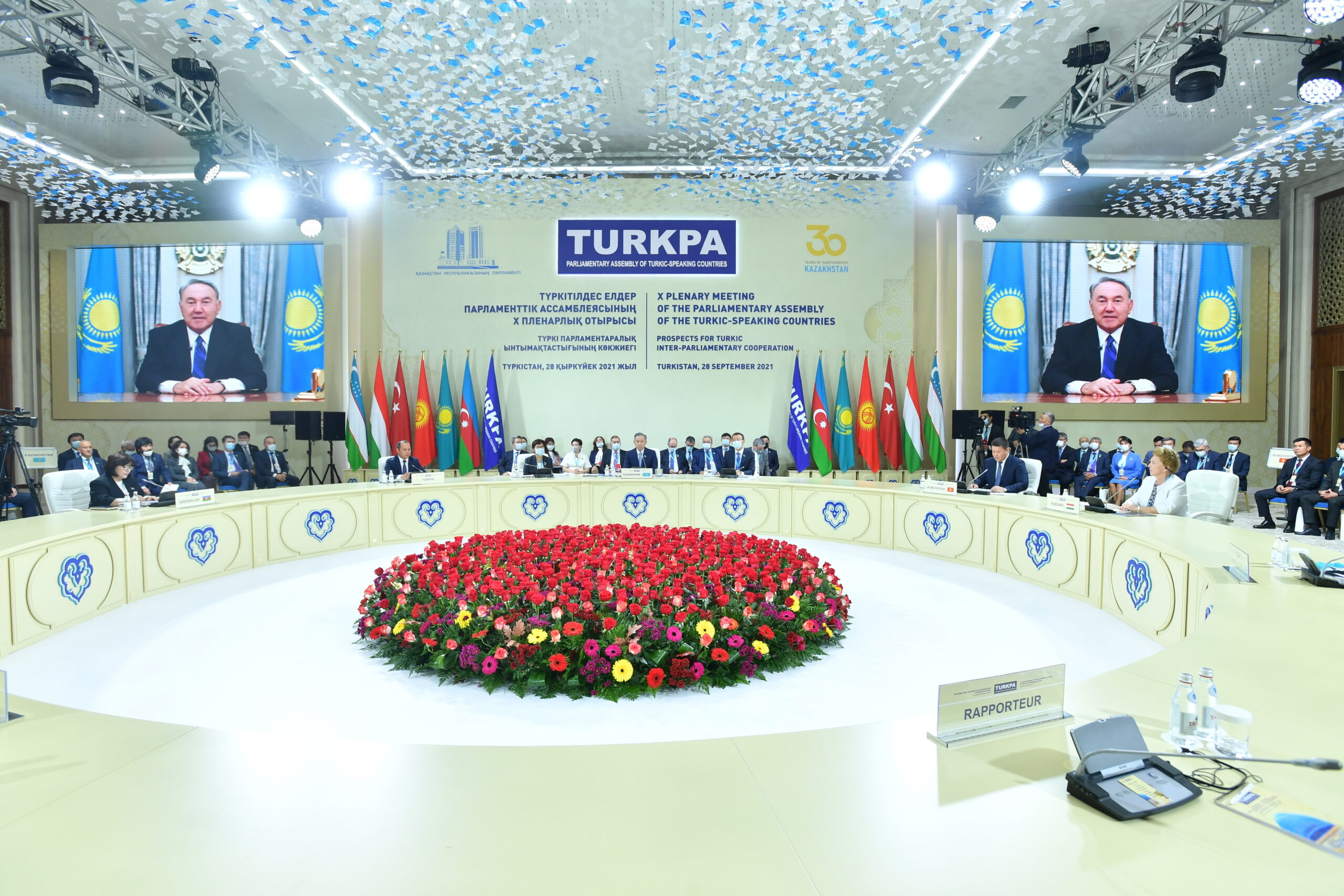 В своём приветствии Первый Президент Казахстана-Елбасы, отметив важность проведения юбилейной встречи парламентариев в духовной столице тюркского мира, подчеркнул особую связь между братскими народами, которая основана на общем языке, культуре и традициях. При этом Нурсултан Назарбаев назвал сближение тюркских стран одной из главных целей своей работы. Первый Президент Казахстана также акцентировал внимание на важности дальнейшего взаимодействия.