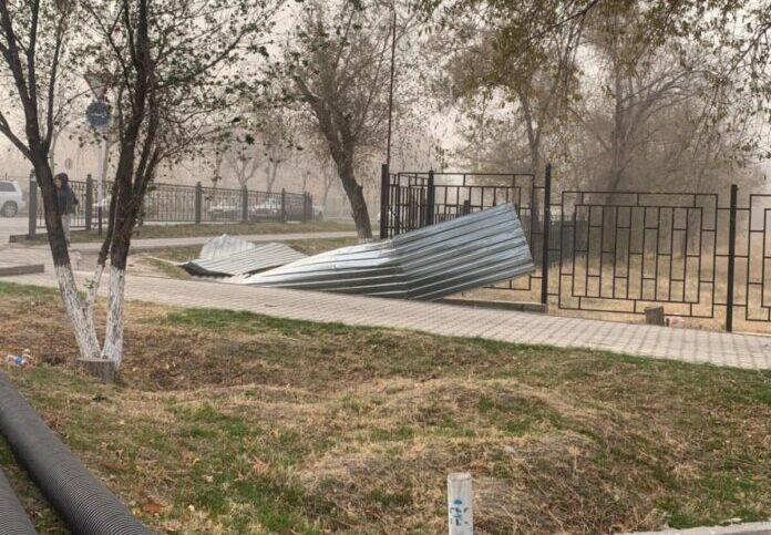 Непогода обрушилась на Шымкент 4 ноября поздним вечером. Сильный ветер в нескольких районах снес металлические конструкции, строительные ограждения, также пострадали деревья, сообщает Otyrar.kz.