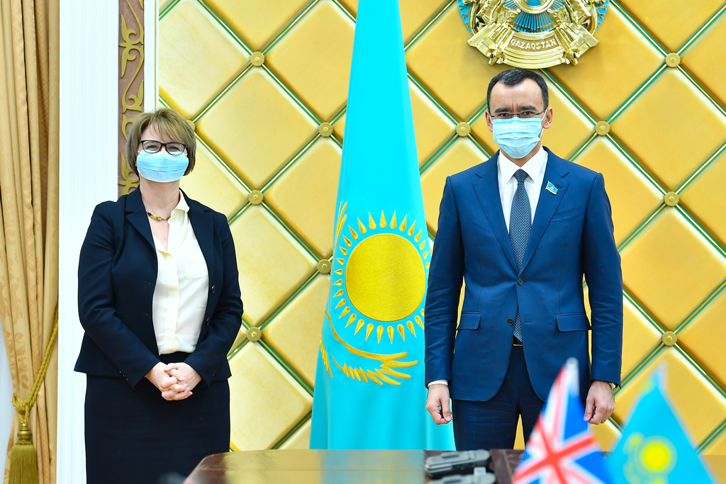 Спикер Сената Маулен Ашимбаев встретился с Чрезвычайным и Полномочным Послом Соединенного Королевства Великобритании и Северной Ирландии в Республике Казахстан Кэтрин Лич, сообщает пресс-служба Сената.