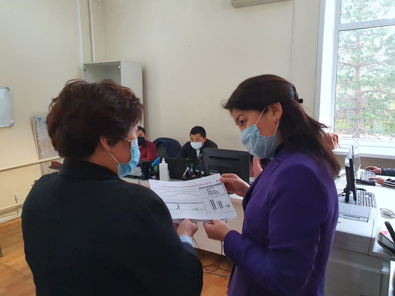 Также Ажар Гиният посетила ситуационный центр УЗ КО. Были продемонстрированы инструменты по мониторингу КВИ и отчетные формы КВИ.